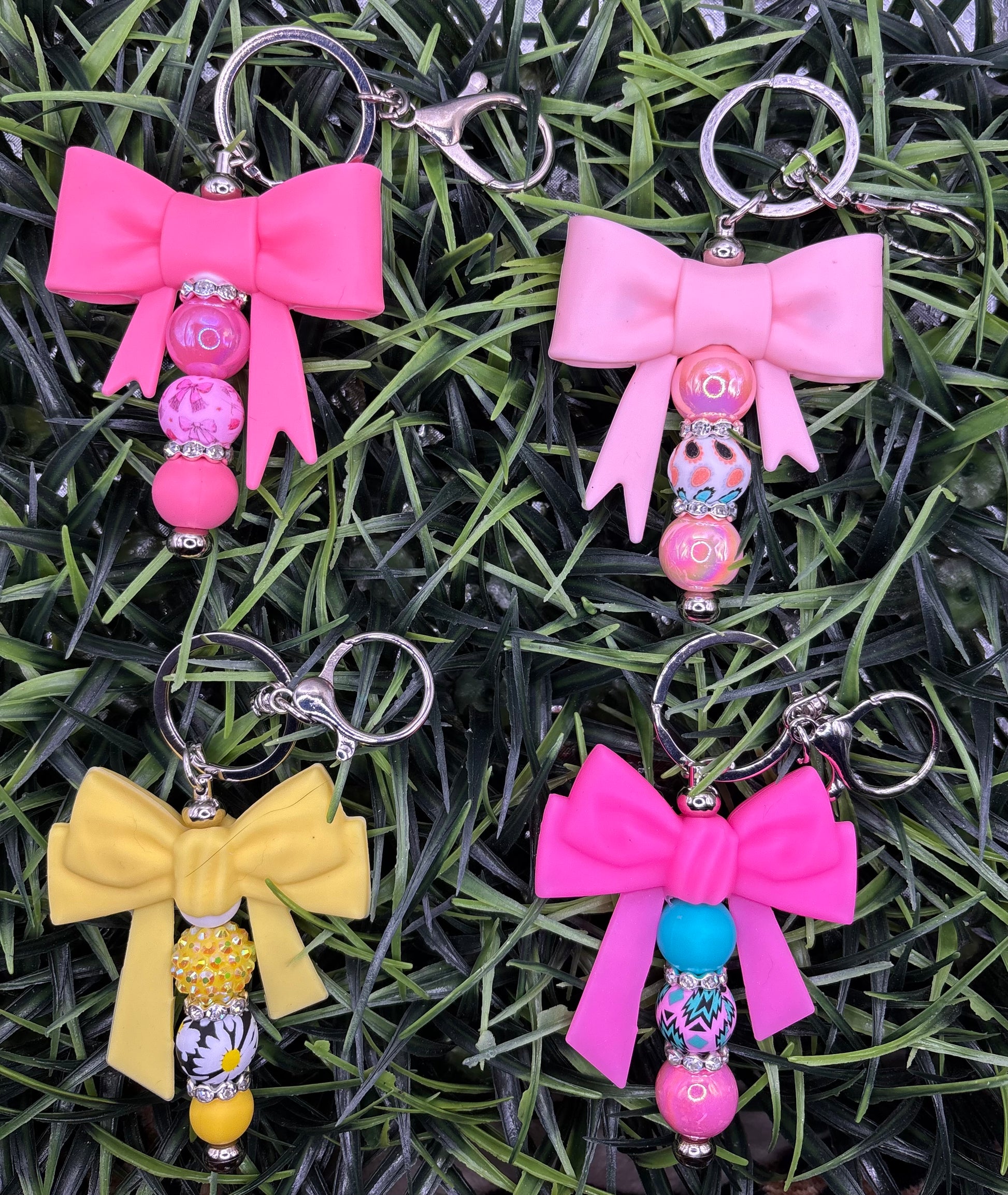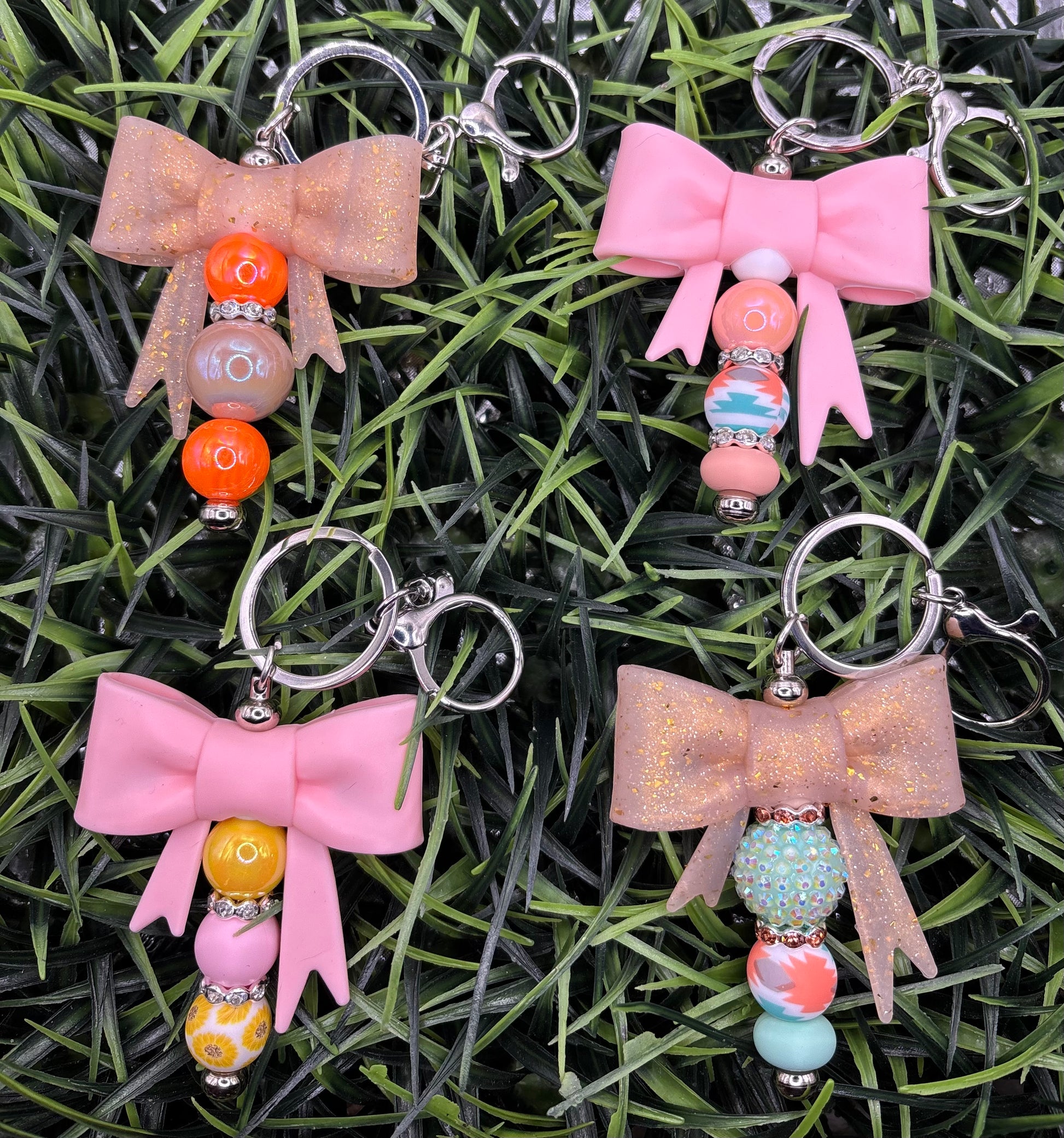 Add the perfect touch of charm to your bag with these adorable big bow purse charms. These can be used on your favorite bag or as a keychain! Designed to stand out, these statement bows and blingy beads elevate totes, purses, backpacks, and keys with a soft, feminine aesthetic.