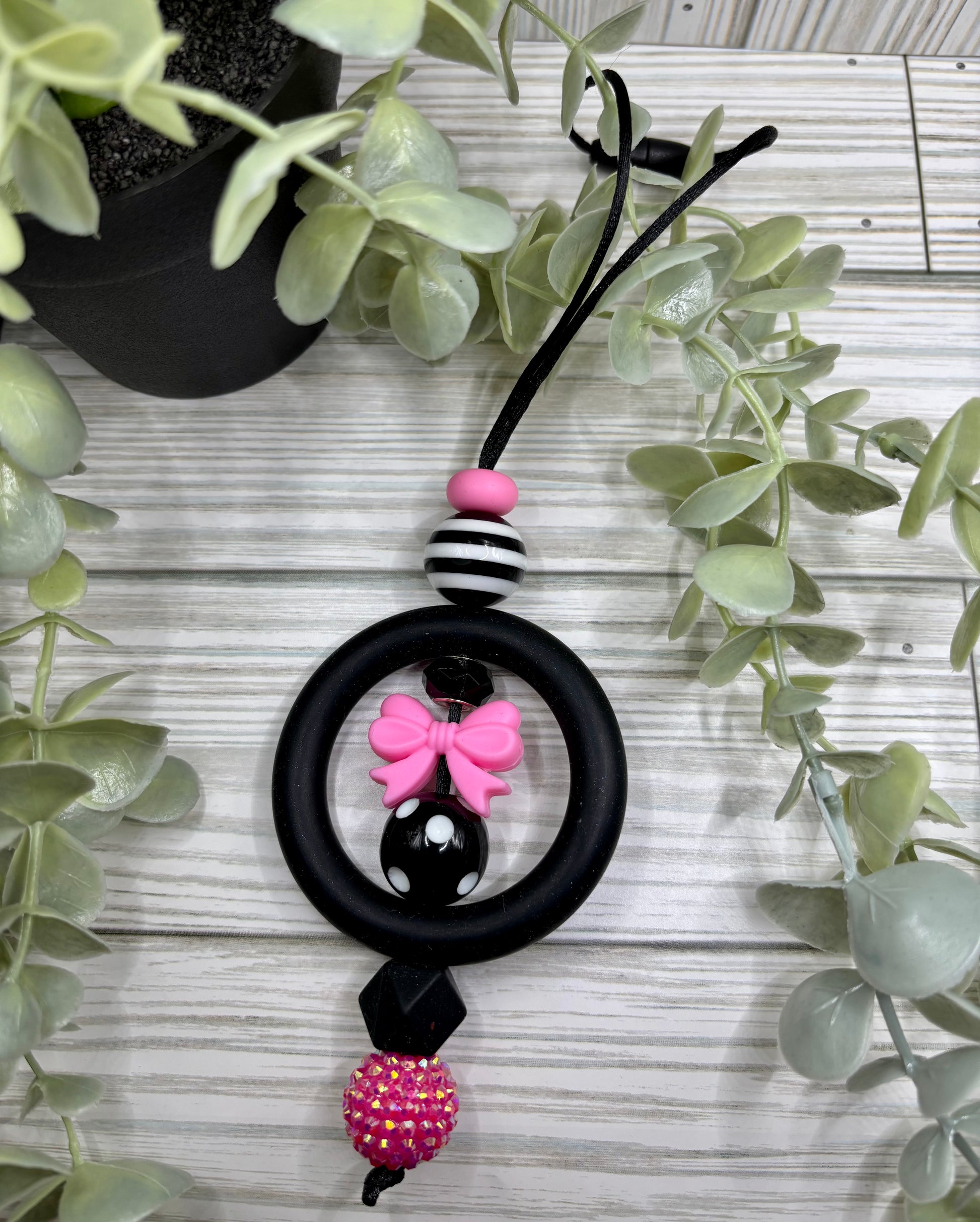 Check out these cute car charms! Hang these car charms from your review mirror to add a little extra personality to your vehicle! Each car charm is color-coordinated with the focal bead of choice! They each are durably made and have break-away clasps for easy removal.